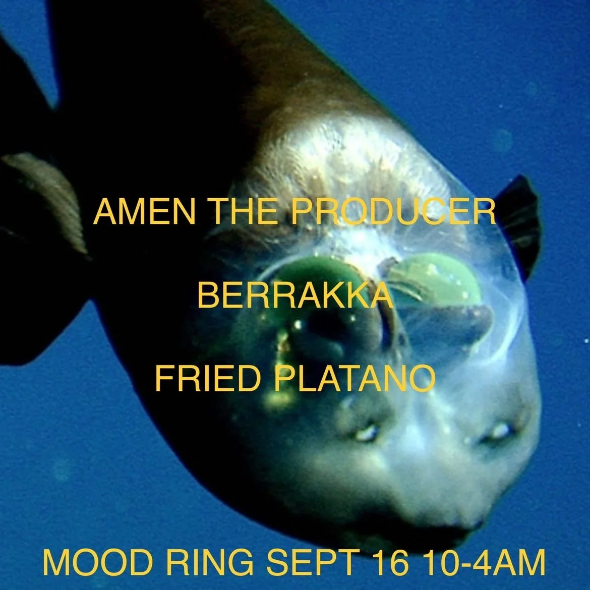 Amen the Producer, Berrakka, Fried Platano Friday, September 16, 2022 10:00 PM Saturday, September 17, 2022 4:00 AM Mood Ring 1260 Myrtle Avenue Brooklyn, NY, 11221 United States (map) Google Calendar ICS