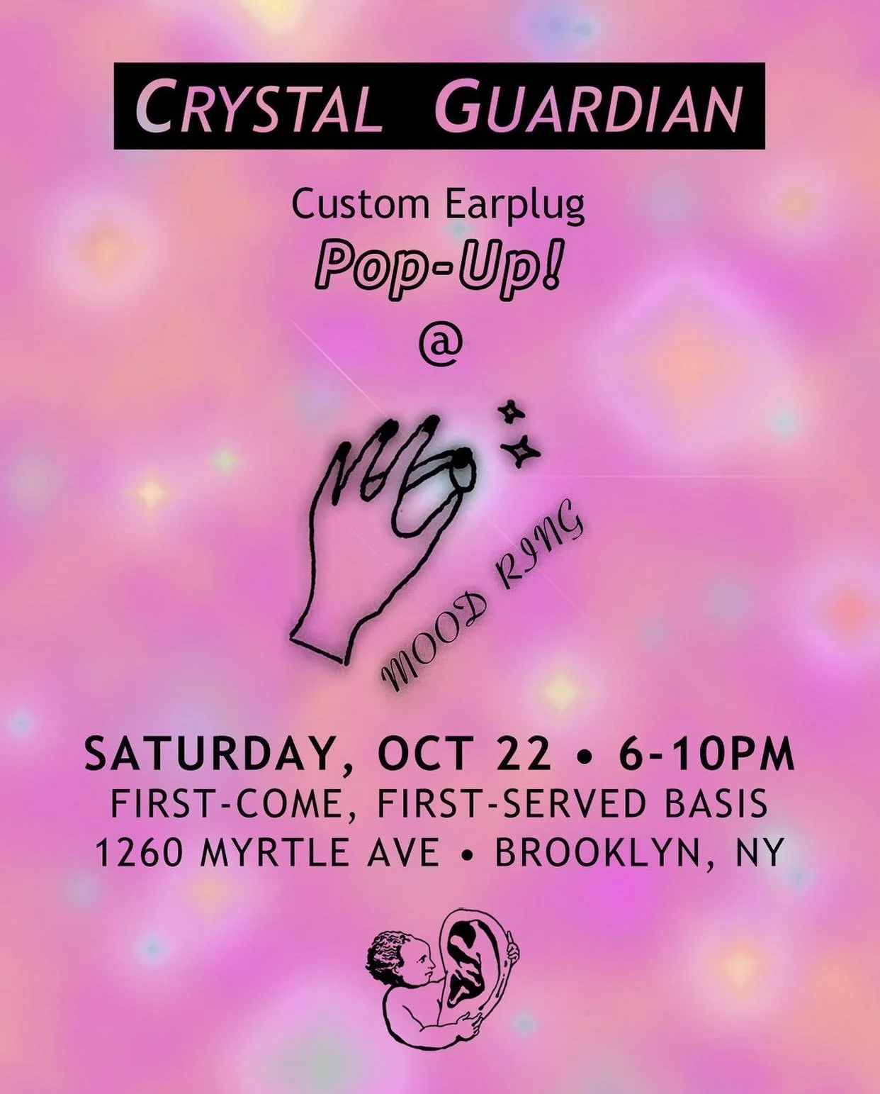 Custom Earplug Pop-up by Crystal Guardian Saturday, October 22, 2022 6:00 PM 10:00 PM Mood Ring 1260 Myrtle Avenue Brooklyn, NY, 11221 United States (map) Google Calendar ICS
