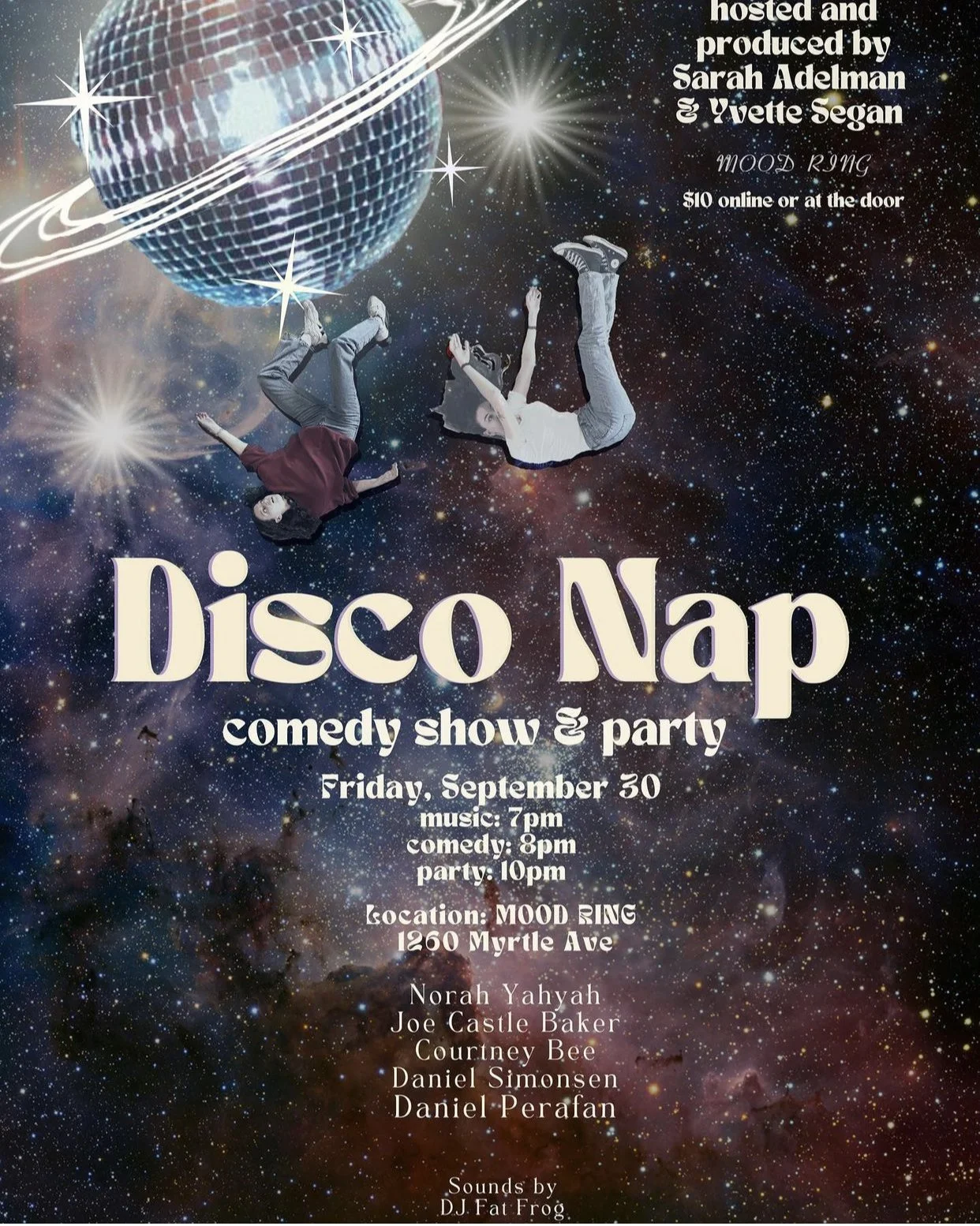 Disco Nap Comedy Show Friday, September 30, 2022 7:00 PM 10:00 PM Mood Ring 1260 Myrtle Avenue Brooklyn, NY, 11221 United States (map) Google Calendar ICS