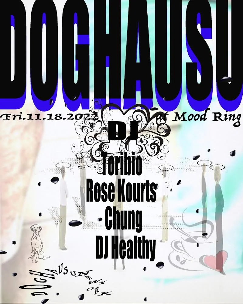Doghausu with Toribio, Rose Kourts, Chung, DJ Healthy Friday, November 18, 2022 10:00 PM Saturday, November 19, 2022 4:00 AM Mood Ring 1260 Myrtle Avenue Brooklyn, NY, 11221 United States (map) Google Calendar ICS