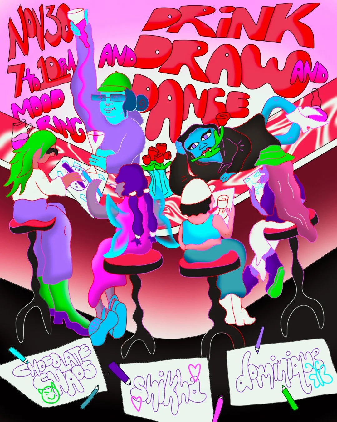 Drink & Draw & Dance Happy Hour with Chocolate Chaos, Shikha, Dominique Wednesday, November 30, 2022 7:00 PM 10:00 PM Mood Ring 1260 Myrtle Avenue Brooklyn, NY, 11221 United States (map) Google Calendar ICS