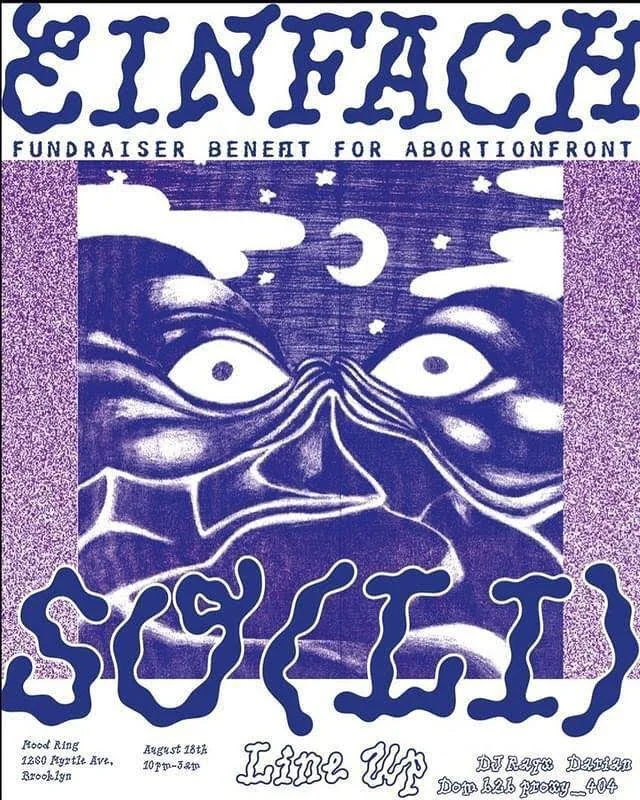 Back to All Events Einfach So(li): Fundraiser Benefit for Abortion Access Front Thursday, August 18, 2022 10:00 PM Friday, August 19, 2022 3:00 AM Mood Ring 1260 Myrtle Avenue Brooklyn, NY, 11221 United States (map) Google Calendar ICS Free with RSVP before midnight