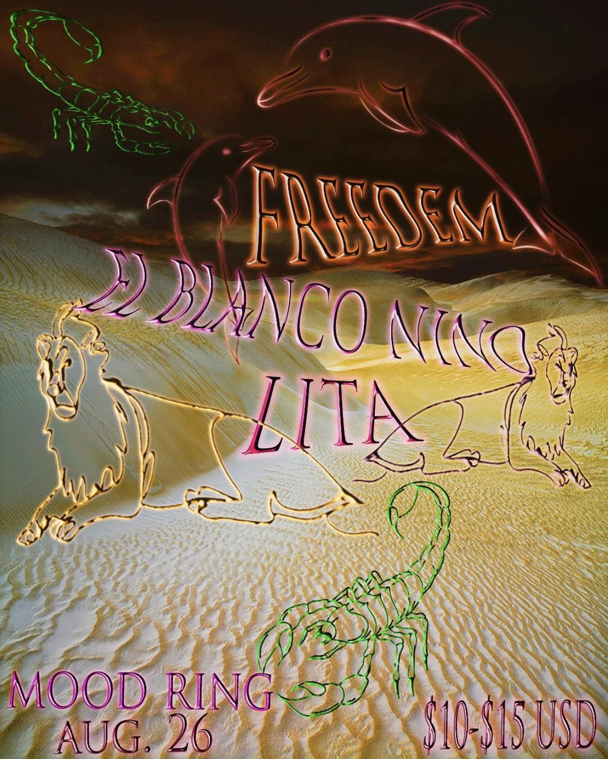 Freedem, El Blanco Nino, Lita Friday, August 26, 2022 10:00 PM Saturday, August 27, 2022 4:00 AM Mood Ring 1260 Myrtle Avenue Brooklyn, NY, 11221 United States (map) Google Calendar ICS