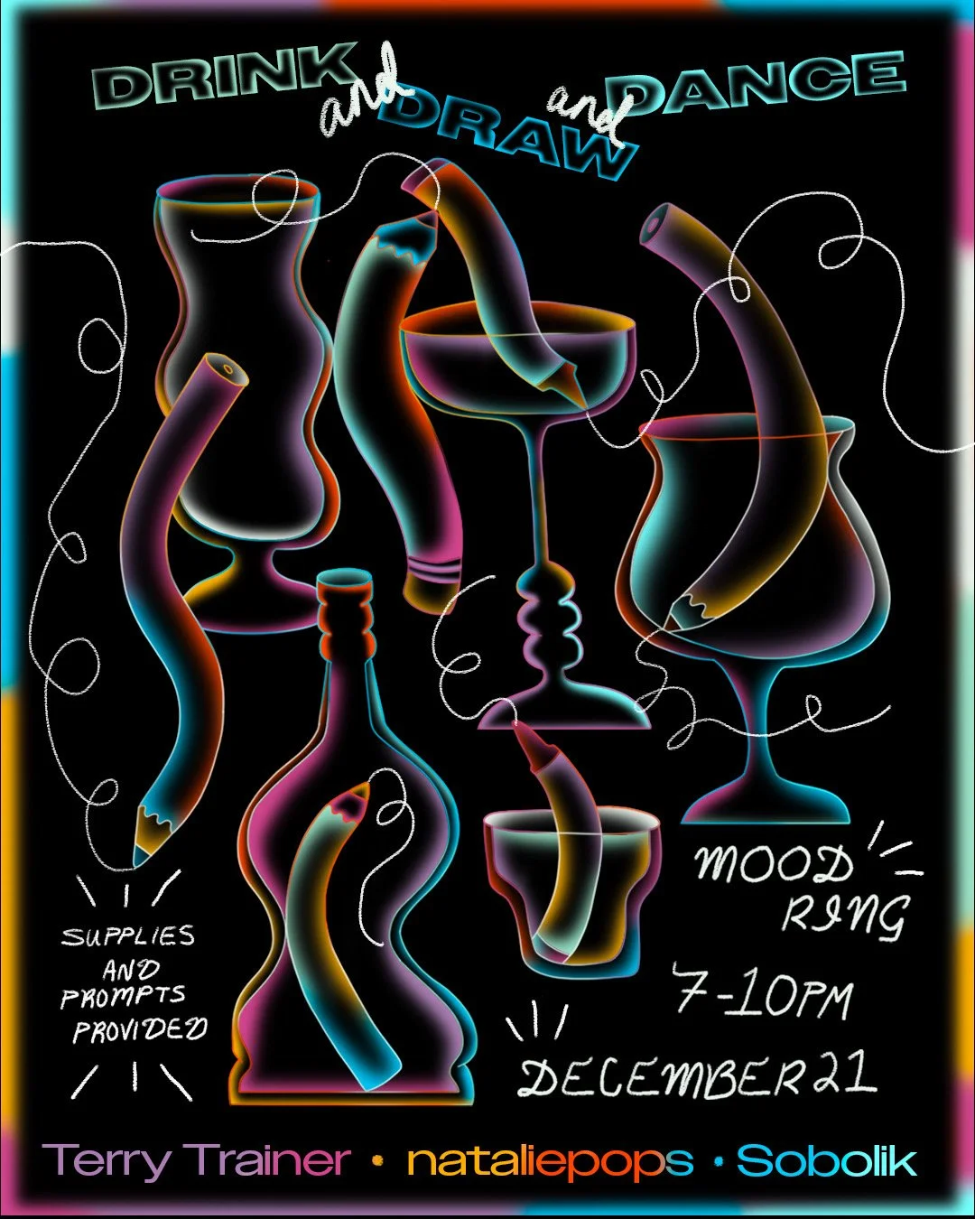 Happy Hour - Drink & Draw & Dance Wednesday, December 21, 2022 7:00 PM 10:00 PM Mood Ring 1260 Myrtle Avenue Brooklyn, NY, 11221 United States (map) Google Calendar ICS