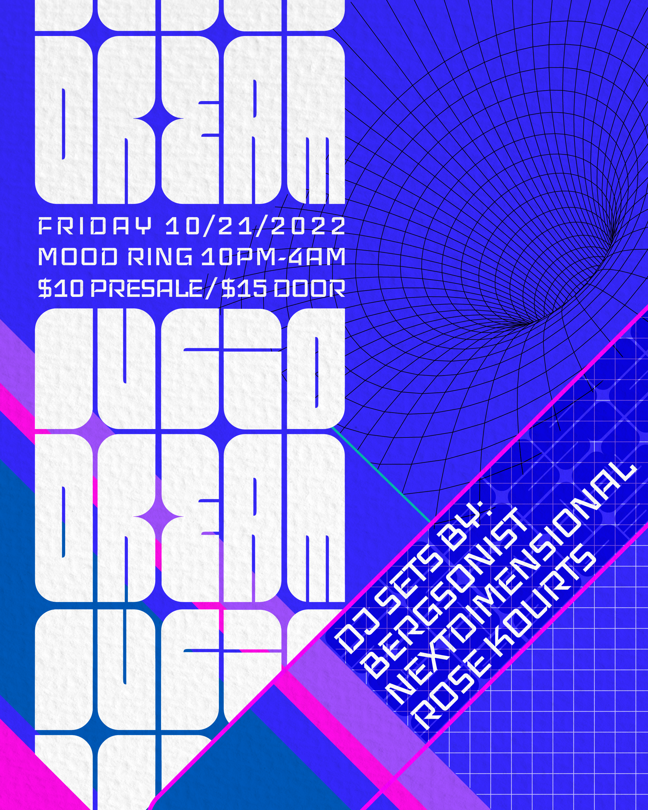 LUCID DREAM with Bergsonist, nextdimensional, Rose Kourts Friday, October 21, 2022 10:00 PM Saturday, October 22, 2022 4:00 AM Mood Ring 1260 Myrtle Avenue Brooklyn, NY, 11221 United States (map) Google Calendar ICS