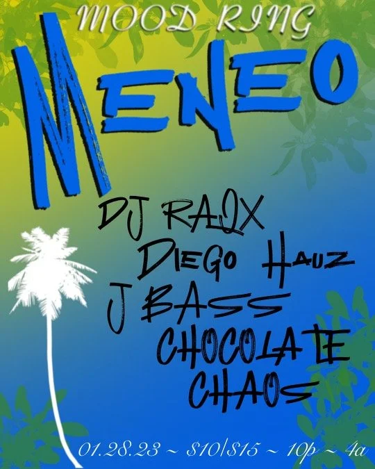 Meneo with DJ Raqx, Diego Hauz, J Bass, Chocolate Chaos Saturday, January 28, 2023 10:00 PM Sunday, January 29, 2023 4:00 AM Mood Ring 1260 Myrtle Avenue Brooklyn, NY, 11221 United States (map) Google Calendar ICS