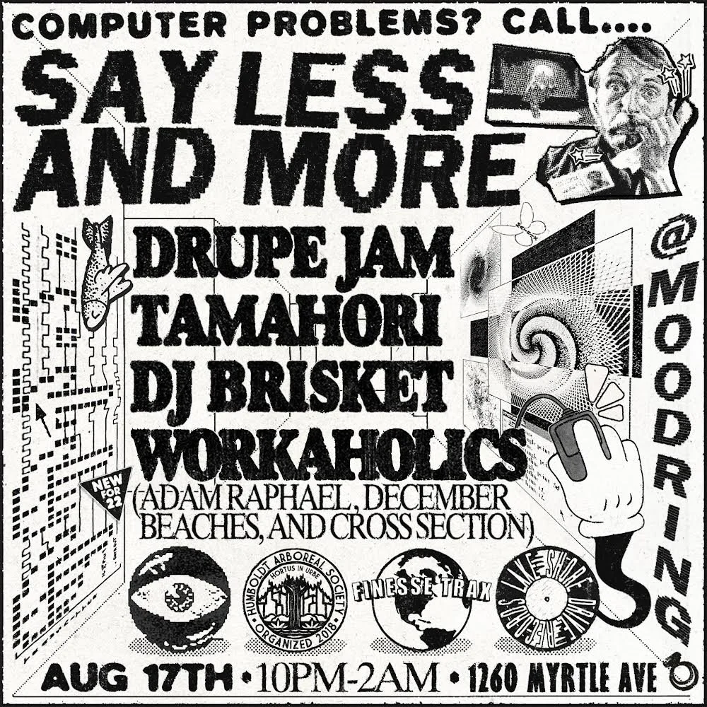 Say Less and More Wednesday, August 17, 2022 10:00 PM Thursday, August 18, 2022 2:00 AM Mood Ring 1260 Myrtle Avenue Brooklyn, NY, 11221 United States (map) Google Calendar ICS